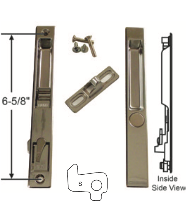 This Flush Mount Patio Door Lock is designed with an “upward” locking mechanism and is used for sliding glass doors. Constructed of cast metal for long life. This Sliding Glass Door lock is suitable for interior and exterior residential use. It has a 6 ⅝” inch hole spacing to fit most sliding glass doors needing an upward lock. It also features a Night Latch for added security to your sliding door lock. This Sliding Door Flush Mount Handle & Lock is finished in Black, Chrome, and White.