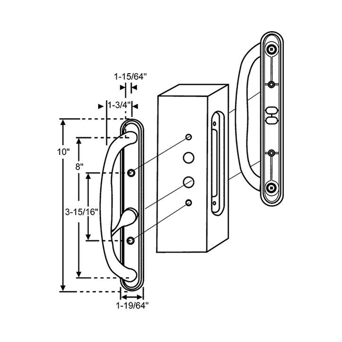 AMESBURY TRUTH – Olympus 98.02 – 3 ¹⁵⁄₁₆” Screw Spacing – SDH-1272 – Sliding Glass Door Handle